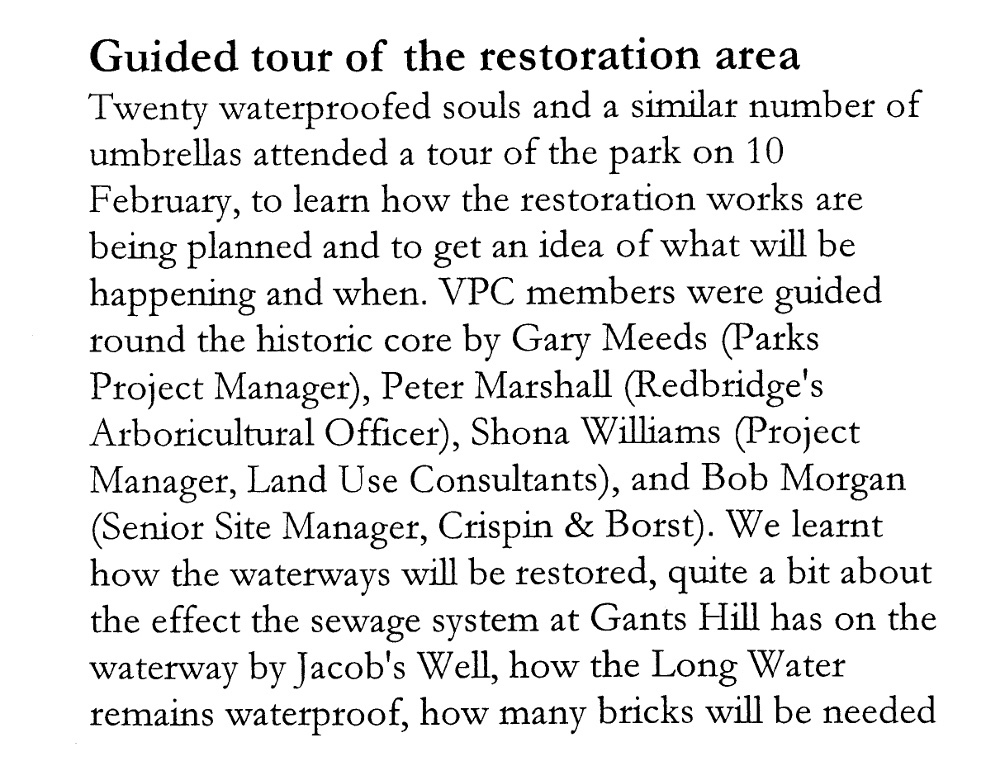 From Valentines Park Conservationists’ Newsletter, Issue #26, March 2007