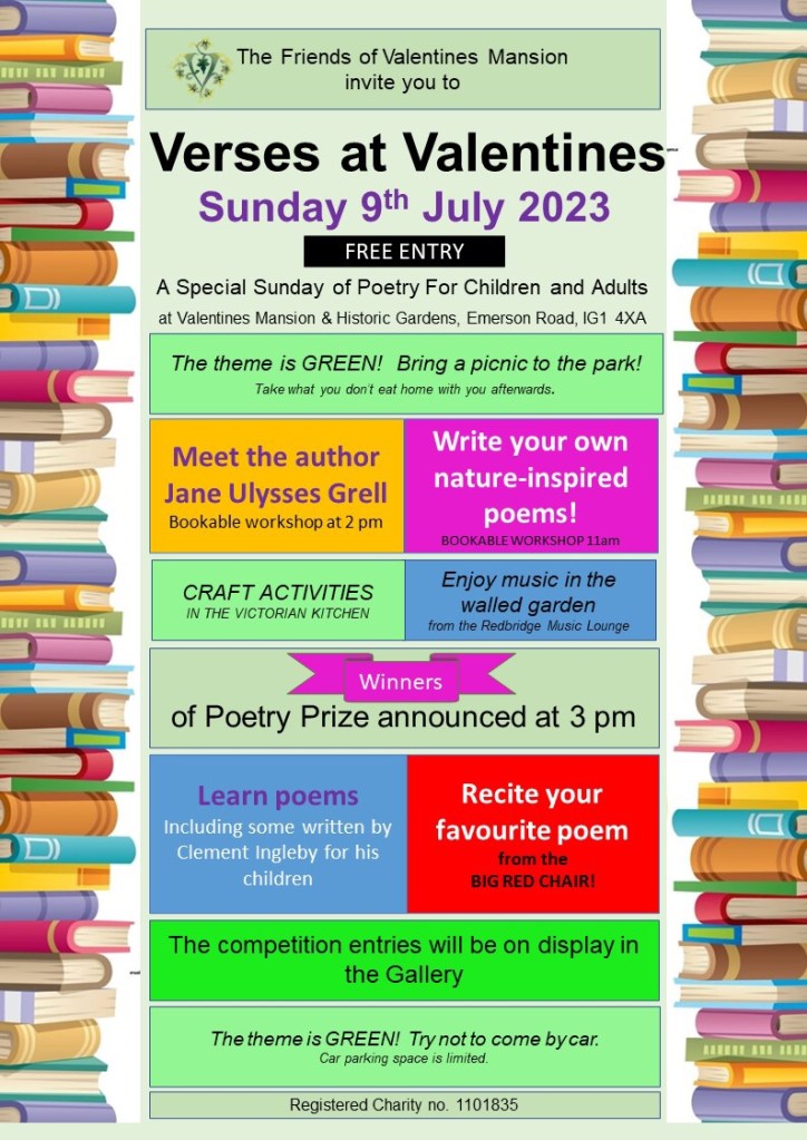 Schools and children who entered the poetry competition have already been invited to book for the workshops. There are still places on both workshops but there’s a temporary blip with the booking process which tells you the workshop in the afternoon is sold out. It isn’t! We hope to resolve this by Monday. The general public can book from June 17th.