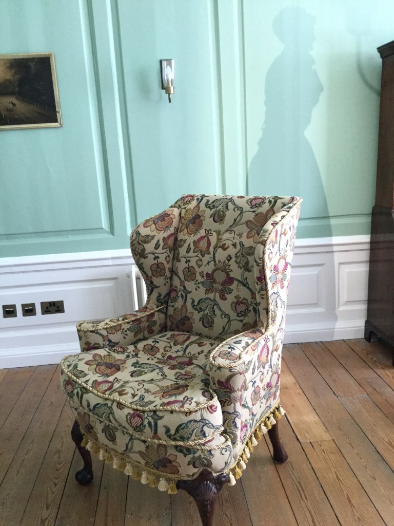 The main entrance seems to have been on the opposite side of the building, under the balcony – the porte cochère was not added to the house for another fifty years. In 1769 it was substantially rebuilt and three rain-water hoppers still bear that date with the Raymond symbol today. The line drawing frequently used as an illustration of the Georgian house dates from 1771, not long after the work was completed.
