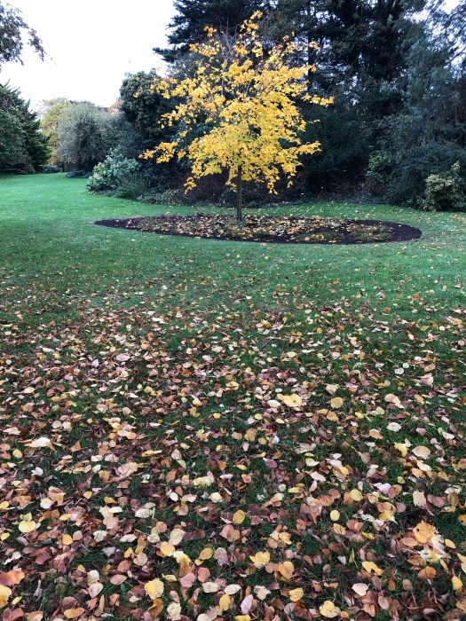 AUTUMN COLOURS Today, in spite of early rain, was perfect for a walk round the Mansion Gardens and a quick lunch at the Gardener’s Cottage Cafe. It was mild enough to sit outside. There is always something new to see and the gardeners were busy planting new trees. Diana Smith 1 Nov 2019