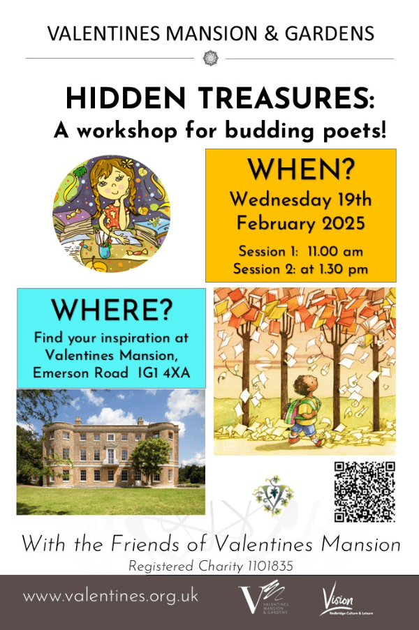 An afternoon to explore the house, gardens and park with winners of the poetry competition announced at 3pm. FREE ENTRY with optional donation to the Friends of Valentines Mansion. The childrenโs poems were displayed in the Holcombe Room.