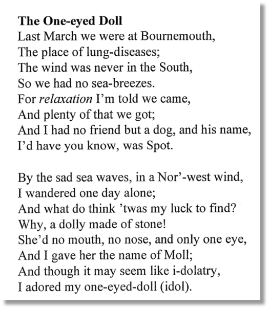 Clement also wrote poetry, some of it in a light-hearted vein to amuse the children. Like this poem composed by Clement for his little daughter Clementina, on her finding a stone on the beach, during a no doubt chilly March trip to Bournemouth.